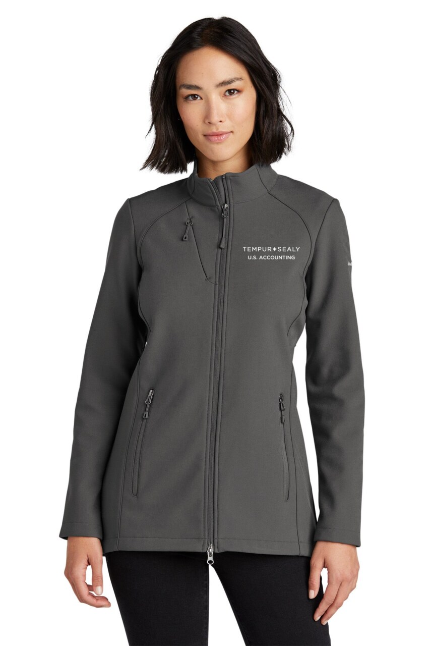 With 4-way stretch, subtle ripstop texture, and weather protection, this jacket is made for mobility. It features a 3K/3K waterproof, breathable fabric, DWR finish, an interior storm flap, chin guard, invisible chest pocket, and adjustable hem. Embroidered Eddie Bauer logo on the left shoulder.