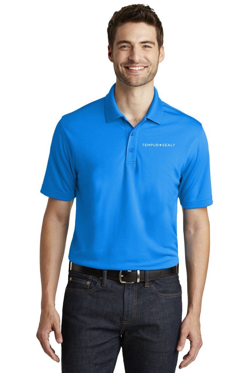 Durable, moisture-wicking, with UV protection. This breathable mesh polo also resists snags. Features include 4.6-ounce, 100% polyester double knit pique, UPF rating of 30, tag-free label, flat knit collar, 3-button placket, pearlized dyed-to-match buttons, open hem sleeves, and side vents.